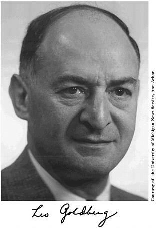 LEO GOLDBERG WAS ONE of the most distinguished leaders of the astronomical community in this century. He achieved outstanding success in the application of atomic physics to astrophysical problems, and is best known for pioneering efforts in the study of the sun from space. He was director of three important observatories: University of Michigan (1946–60), Harvard (1960–71), and Kitt Peak National Observatory (1971–77). He played an important role in founding the Association of Universities for Research in Astronomy, Kitt Peak National Observatory, and the National Radio Astronomy Observatory. He contributed real leadership as president of the American Astronomical Society (1964–66) and the International Astronomical Union (1971–76).